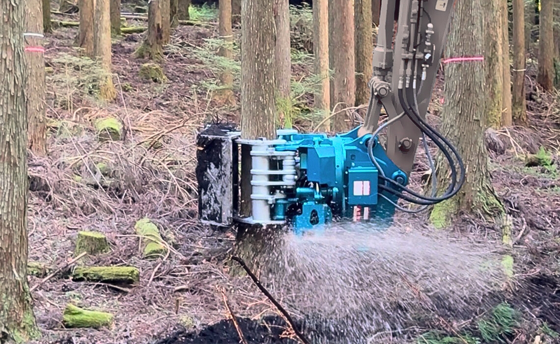 イワフジ工業(岩手県奥州市)は、伐倒、玉切り、集材、掘削、転圧を1台でこなすアタッチメント「GFB―90Sフェラーバケットグラップル」の販売を開始した。