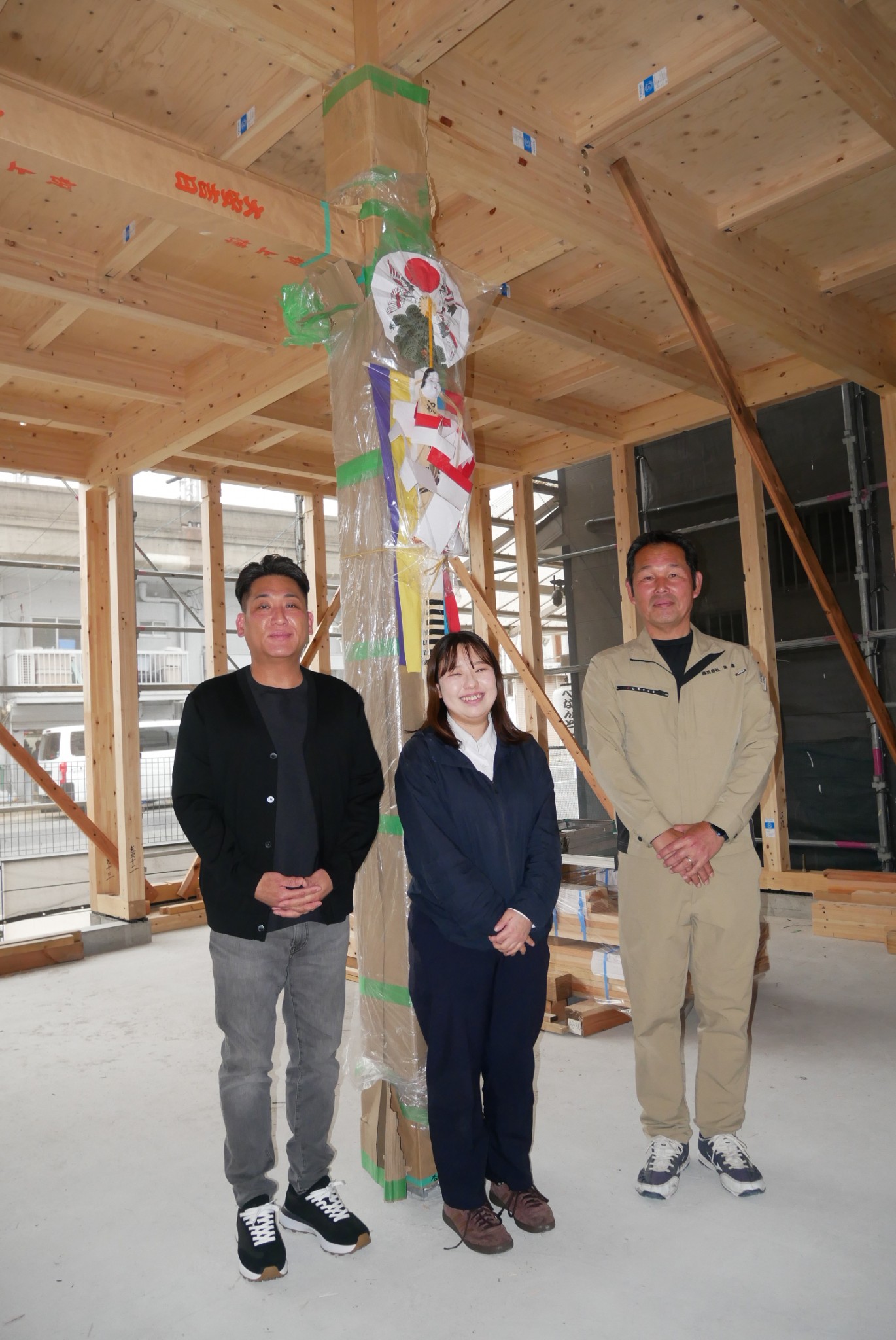 フォレストグループ(兵庫県丹波市)は、グループの製材、建設部門が協力する形で「丹波材(桧)」を使った木造3階建て事務所ビルを神戸市で建設中だ。
