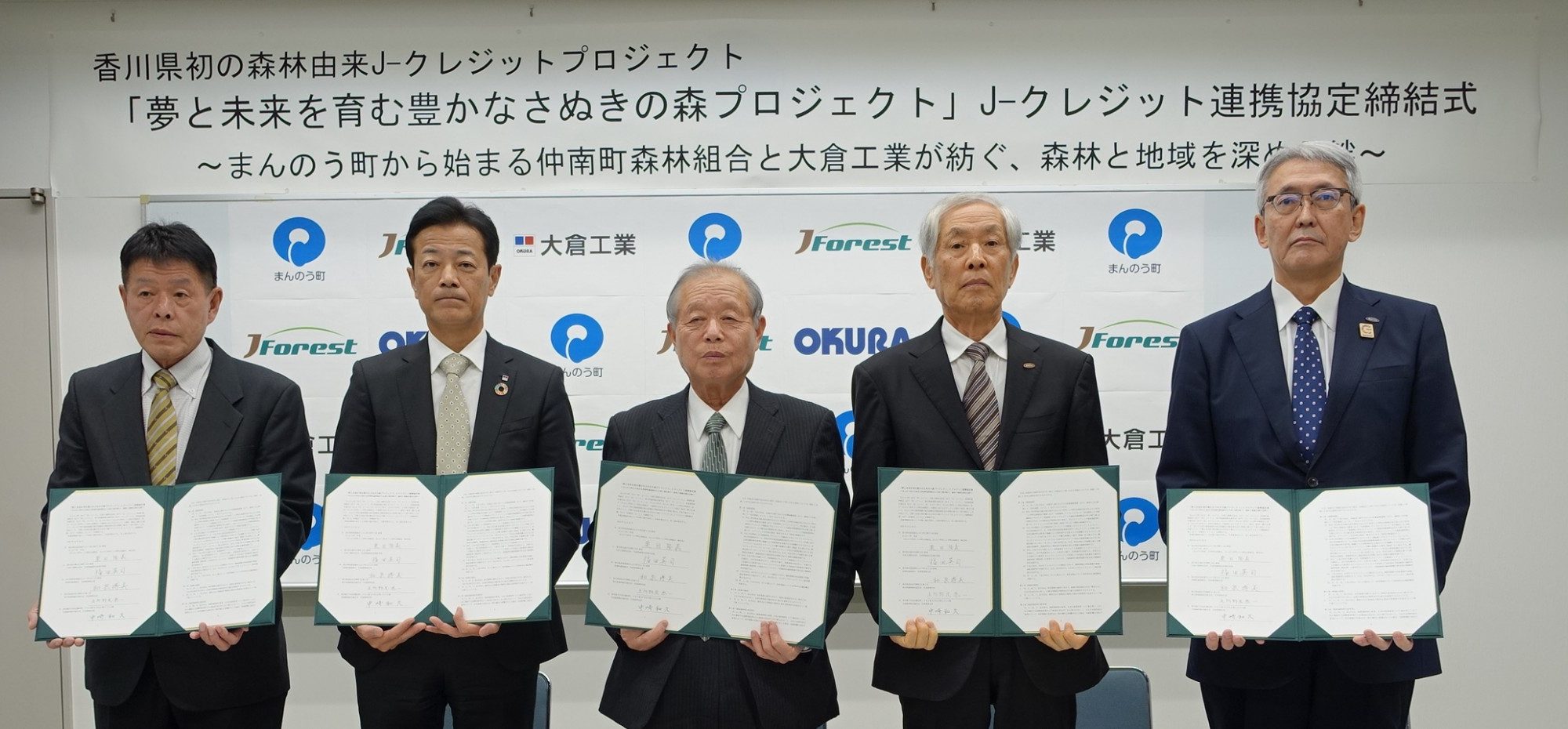 大倉工業(香川県丸亀市)など5者は22日、香川県初の森林由来J-クレジット連携協定を締結した。